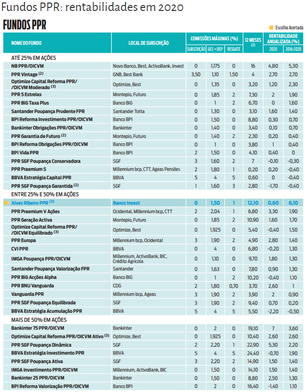 • a partir dos 50 anos, pode deduzir até € 300, desde que aplique € 1500.